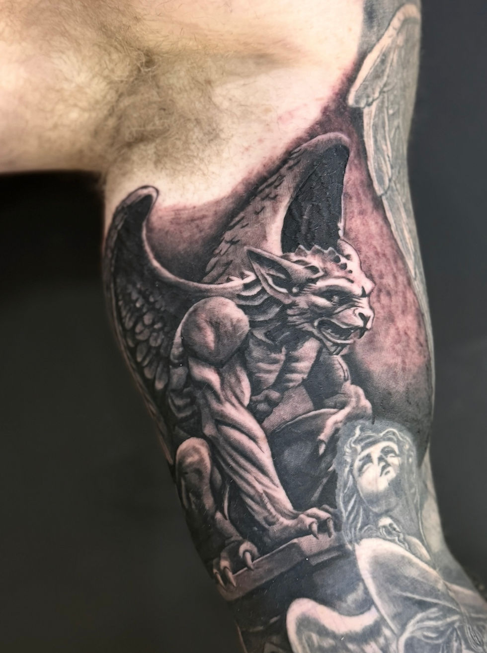 Nolan is creative, diligent, and a pleasure to work with. His tattoos are high-contrast yet smoothly shaded. He's looking to add more full sleeve/body projects to his repertoire.